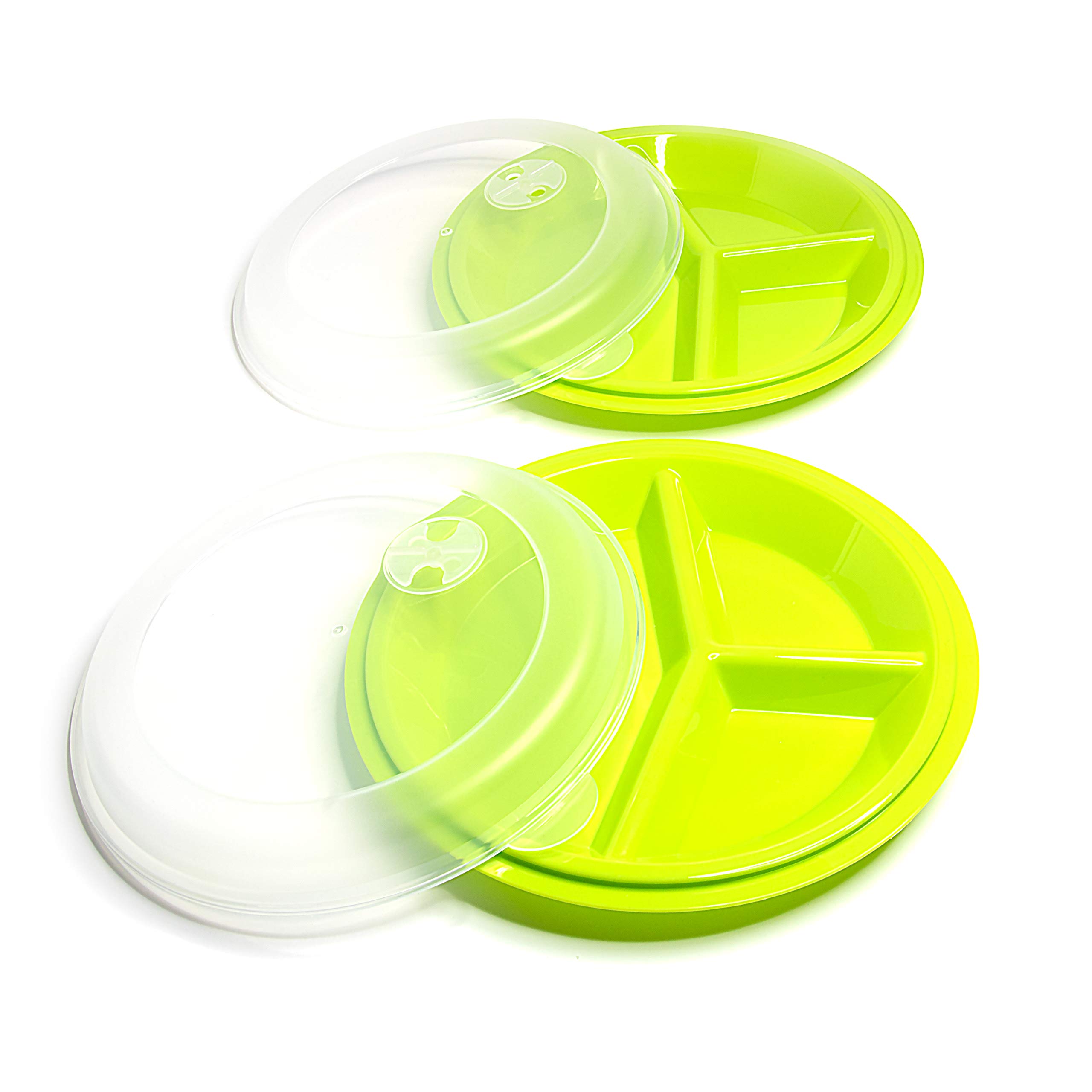 Sporgo 3 assiettes à micro-ondes sans BPA, 3 compartiments, idéales pour la famille, conviviales pour les repas au burea