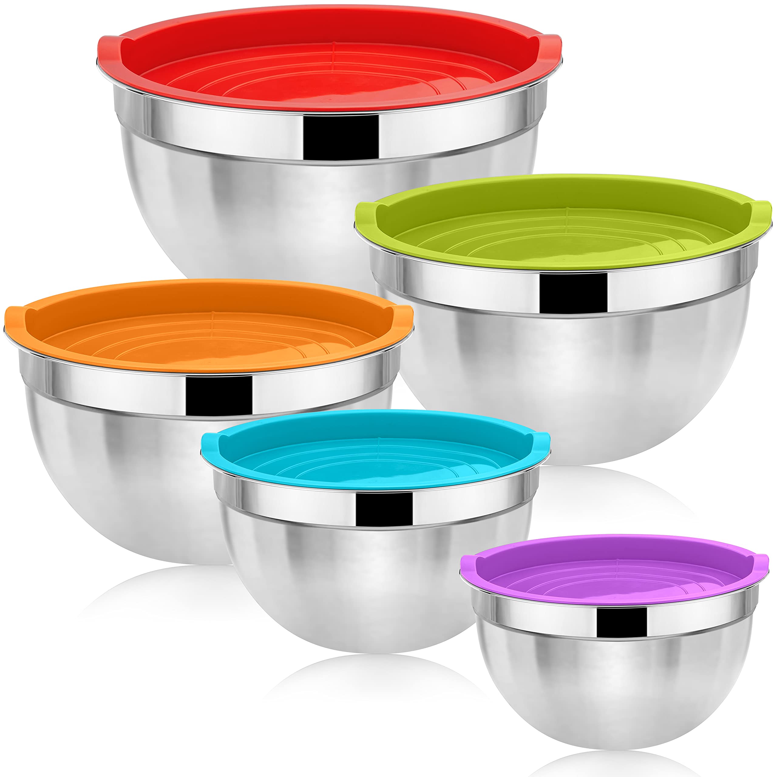 Saladiers Silberthal avec Couvercles Hermétiques - Acier Inoxydable pour Conserver et Mixer - Lot de 3