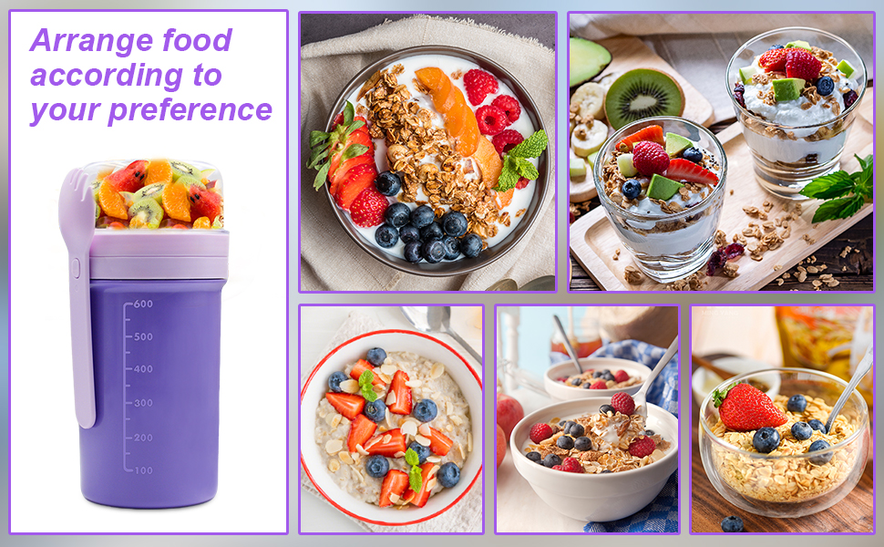 【Élégant et Transportable】Grâce à sa structure en double couche pour préserver la fraîcheur, ce pot à muesli est léger et se transporte partout, que ce soit pour la travail, l'école ou les voyages. Mesurez vos portions facilement!